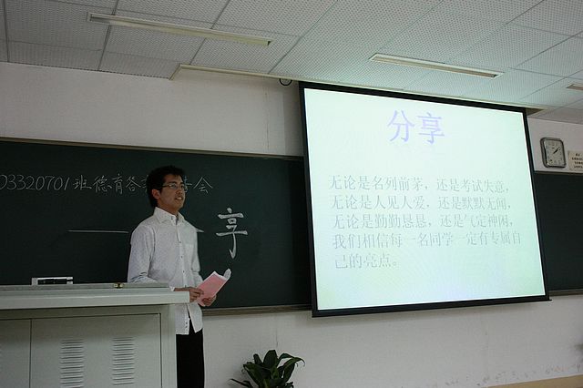 答辩的最后,班主任杨志兵老师也发表了自己的感言。他感动的同时,亦是感慨万千,他认为同学们比想象中的成熟 。杨老师同时也表达了对同学们的寄望:通过这次德育答辩规划大学生活、树立正确目标、并且有计划的实现自己的人生目标和价值。