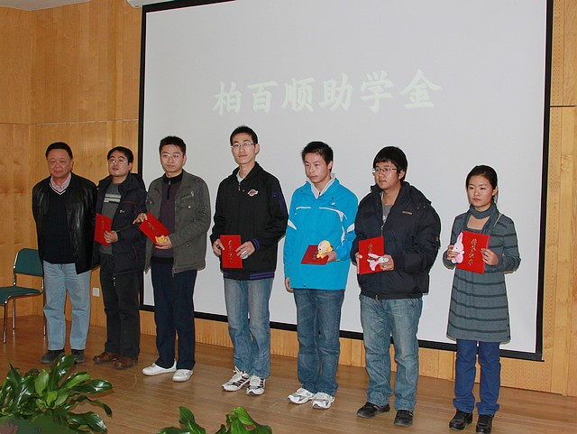 2009年12月12日,材料学院第六届柏百顺基金颁奖典礼在我校国际交流中心三层报告厅隆重举行。柏百顺石油化工有限公司董事长蔡伟清、夫人蔡四莲、儿子蔡新龙、女儿蔡静怡、公司技术部经理包祥俊、材料学院院长邹炳锁、副院长曹传宝、副书记副院长韩笑、教授周政懋等出席了本次颁奖大会,材料学院部分师生参加了大会。