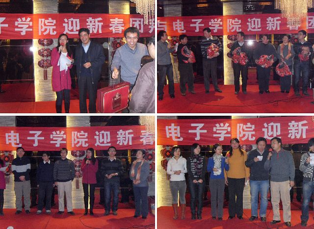 在信息学院工会的精心组织下,团拜会上安排了精彩的文艺节目和抽奖活动。节目期间,学院2009年新入校的教职工进行了自我介绍,学院还为2010年是本命年的各位老师特意准备了喜庆的红色小老虎娃娃。