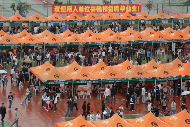 4月10日,我校珠海学院2010年春季校园招聘会在珠海学院体育运动场拉开帷幕。本次校园招聘会是由珠海市香洲区人力资源中心和德赢AC米兰官网珠海学院共同举办,共吸引了包括澳国旅、银通新能源、乐通化工、人人乐商业、天威飞马、百胜餐饮(深圳)有限公司、台山市台澳铝业、中国土木工程集团珠海分公司、中德安联等来自珠三角地区约100家用人单位参会,主要集中在IT、机械、化工、金融、酒店、零售等,提供软件研发、程序员、工程师、生产技术员、市场营销、会计、行政人员、客服、美工设计等约370个职位,招聘岗位数约2400人,共吸引包括北理工珠海学院、北师大珠海分校、北师大-浸会联合国际学院、暨大等珠海高校应届毕业生约5000人参加。