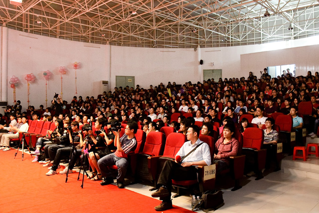随后,举行了《校园风云》剧组见面会,剧组主要演员登台为大家讲述了在拍摄过程中发生的有趣故事。与观众之间的互动,更是把现场的气氛一次又一次推向高潮。电影导演龙新远谈到:拍电影是一个纯粹的teamwork,虽然整个拍摄过程遇到很多困难,但是在学生工作处的支持和全体剧组人员的共同努力下,一切困难迎刃而解,《校园风云》最终顺利杀青。见面会结束后,举行了电影的首映启动仪式和播放。李绍勋副书记、刘卫平处长、李明刚处长和演员们上台为电影首映启动,在大家的欢呼声中,一同见证了《校园风云》全校首映!