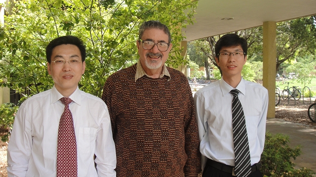 刘云教授(左)、Richard Zare教授(中)、博士生叶选挺(右)合影