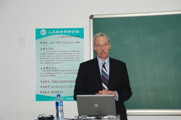 6月2日下午,美国马萨诸塞大学经济系教授,著名政治经济学家大卫•科兹(David Kotz)应我校人文与社会科学学院经济系的邀请,在研究生楼210教室作题为《马克思主义政治经济学与新古典经济学》的讲座。