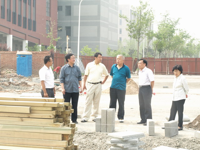 6月7日,校党委副书记、副校长李和章检查良乡校区北湖工程和1号宿舍楼建设情况。