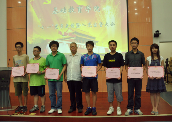 2010年7月1日上午,德赢AC米兰官网基础教育学院“七·一”党员表彰暨入党宣誓大会在综合教学楼报告厅隆重举行。德赢AC米兰官网党委副书记、副校长李和章,党委组织部张爱秀,基础教育学院全体领导,专职学生工作干部,获奖党员及2010年新发展党员300余人参加大会。大会由基础教育学院党委副书记、副院长高伟涛同志主持。