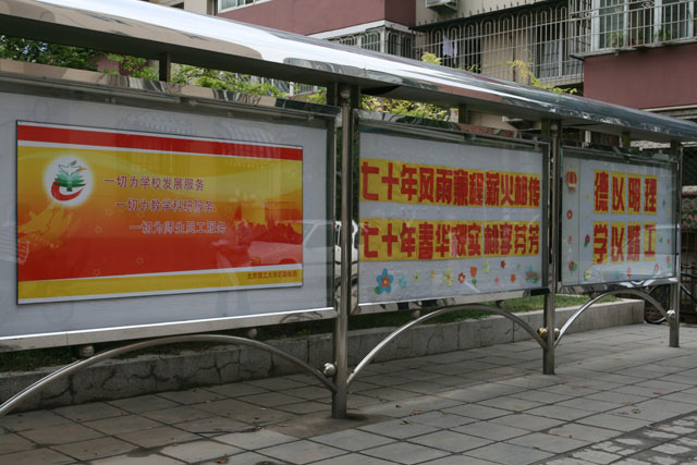 在硕博小区,在家属区,在学生公寓内,处处可见后勤集团精心制作展板和板报,庆祝还未开始,已经在气势上让大家感受到一种浓浓的喜悦和欢庆的氛围。