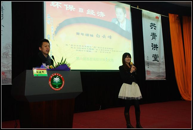 为促进北理学子深化环保意识、了解环保经济,以首都高校环境文化周的到来为契机,我校邀请到博奇环保副总裁、2007CCTV中国经济年度人物、2007年度时尚先生获奖者白云峰先生,做客共青讲堂第八十期,带来“环保亦经济”为主题的讲座。