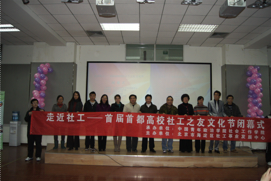 本次共建实习基地协议签署及基地揭牌仪式是在由北京市海淀区社工事业发展中心主办,中国青年政治学院承办,中国农业大学、中华女子学院、中国劳动关系学院、北京科技大学、北京农学院等高校协办的“走近社工——首届首都高校社工之友文化节闭幕式”上进行的。出席本次活动的嘉宾还有中华女子学院社会与法学院党总支书记何继秀、中国劳动关系学院社工系主任张默和社会工作教研室主任王晓慧、北京市协作者社会工作发展中心项目推广部统筹卢磊、北京惠泽人咨询服务中心项目经理姚振刚等。