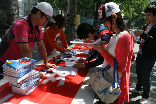 宣传活动于上午10点正式开始。当每一位同学经过宣传台时,我们便向他们发放防灾安全知识手册,宣传防灾安全知识的必要性和重要性。同时,我们请同学在写有“提高安全意识,防灾减灾从我做起”的横幅上签名,不到一个小时的时间,条幅上就已经签满了同学们的名字。为了检验同学们是否真正了解防灾减灾的安全知识,我们还特别准备了防灾减灾知识问卷,内容涉及地震、火灾逃生、消防器材使用、交通安全、食品安全卫生等方面,通过答卷加深对防灾减灾知识的理解。凡参与此次答卷的同学还可以获得一份小礼品,我们的目的不是考试,而是让更多的同学真正熟悉生活中必备的防灾减灾知识,为他们在工作、学习、实际生活中的安全起到“防患于未然”的保障作用。