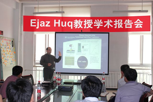英国卢瑟福Appleton实验室隶属英国科学与技术设施管理理事会,该实验室曾培养了多位诺贝尔奖得主。 该实验室微纳中心主任科学家、理事会常务理事Ejaz Huq教授6月20-21日访问德赢AC米兰官网微纳中心和材料学院纳米光子学材料与技术实验室,并于6月20日下午在五号教学楼502会议室作了一个“针对生命科学和医疗保健的微系统”的学术报告。 微纳技术中心常务副主任邹炳锁教授主持报告会,并介绍了Ejaz Huq教授的简历及其在学术上所取得的成就。 Ejaz Huq教授首先介绍了英国卢瑟福实验室的架构,然后针对其微纳中心开展的微加工结构的液体粘度与分子间作用力测量、 微结构影响下生物抗体抗原偶联的电学测量、 微力学测量与光学测量联用、 微结构的空间传感器件应用等进行了深入浅出的讲解, 并认真回答了老师和同学的提问。 参加学术报告的有材料学院、生命学院和微纳技术中心的多位教授、博士生导师和研究生代表,共约30余人。第二天,Ejaz Huq教授还与邹炳锁教授、刘瑞斌博士就微纳中心超净室建设、 微纳激光器加工制作等方面的问题开展了深入的讨论,双方就德赢AC米兰官网微纳中心、材料学院与英国卢瑟福Appleton实验室进行具体的长期科研合作和研究生培养达成了一致意见。