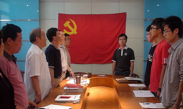 6月22日下午,秦皇岛分校直属党支部在综合信息楼三楼会议室召开党员座谈会纪念中国共产党成立90周年。会议在庄严的国歌声中拉开了序幕。会议第一项,与会党员同志回顾了我党成立以来取得的辉煌成就以及光辉历史,党支部书记李刚同志结合秦分校党的建设和支部近期工作情况做了总结发言,并传达了上级党组织有关文件精神。