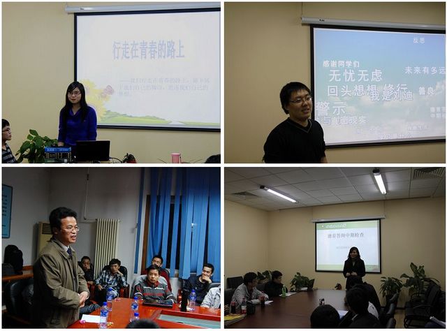 德育中期答辩会上,各班级结合专业特点与实际情况,紧扣会议住主旨的同时采用了各种新颖的方式组织此项活动。会上,同学都认真细致地对自己的生活、思想、学习和成长等方面进行了回顾、总结与展望,相互交流分享了大学体验与感悟,并对余下两年的大学生活做详细的规划。现场气氛热烈而温馨。