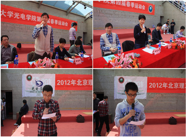 2012年4月12日下午13点,德赢AC米兰官网光电学院第四届春季运动会在中关村校区东操场拉开序幕。出席此次开幕式的领导和老师有魏平院长、韩宝玲书记、郝群副院长、赵长明副院长、邹锐副书记和王涌天教授。学院各机关部门及各研究所的老师们也一齐观看了本次运动会的开幕仪式。参加本次运动会的有08、09级本科生,研一、研二硕士生,博士生以及学院的教职工队伍等。