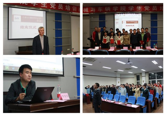 学校党委组织部副部长李德煌、机械与车辆学院党委书记张英、院长助理范文辉出席了结业仪式。结业仪式上,优秀学员代表薛阳宏分享了他参加本期培训的收获与感想。张英书记为优秀学员颁发证书,并作重要讲话。张书记强调入党积极分子应以身作则,敢为人先,在学术上踏实,在做人上端正,积极学习党的方针政策和理论知识,争取早日在思想上入党。李德煌副部长以“增强党员意识,发挥模范作用”为主题做结业报告。李老师旁征博引、谈古论今,从党的发展历程到当今国际形势,慷慨激昂而又娓娓道来,赢得了学员的阵阵掌声。结业仪式上,2008级、2009级新发展党员一起进行了宣誓仪式,体现了学院党建工作“讲、传、帮、带”的优良传统。