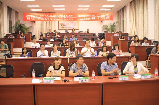2012年5月21日晚7点,管理与经济学院团校第一期团学骨干培训素质拓展活动在主楼241报告厅顺利开展。管理与经济学院团委书记彭明雪,研工委书记梁昊,团委副书记张瑞出席了此次培训,各班班长、团支书,学院各个学生组织干部共65人参与了培训。