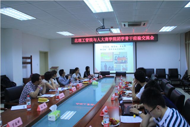 5月26日上午9时,管理与经济学院与人民大学商学院团学骨干经验交流会在研究生楼111会议室顺利举行。人民大学商学院学生团学骨干一行6人受邀参会,我校管理与经济学院团委书记彭明雪、副书记张瑞,以及学院社团学生骨干参加了此次会议。交流会中,首先由管理学院学生会、分团委、晨帆新闻社、共产主义学习实践会、青年志愿者协会及科技创新协会等六大学生组织的负责人介绍了各自社团的理念、职能、组织机构建设、传统活动及对未来的展望,随后,人民大学商学院的学生干部们也对人民大学商学院团委的学生组织架构、学生组织建设、学生素质培养进行了详细展示。两校的学生骨干一同分享了团学工作中的创新点及优势,并提出了现在工作中的难题,大家共同商讨解决方案。最后,我校管理与经济学院与人民大学商学院参会的团学骨干互赠纪念品,交流会圆满结束。