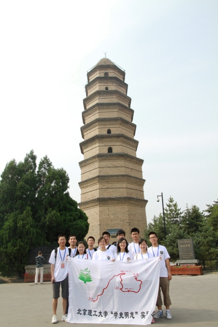 迎着朝阳,实践团首先向延安圣地的标志性建筑宝塔山进军。“只有登上宝塔山,才算真正到了延安”。宝塔山,作为新民主主义革命的红色首都¬¬—延安的标志和象征而闻名于世。队员们在宝塔山下共读历史,怀念延安岁月,歌颂延安精神,缅怀党中央在延安的革命业迹,让我们接受了革命传统教育的一节好课。