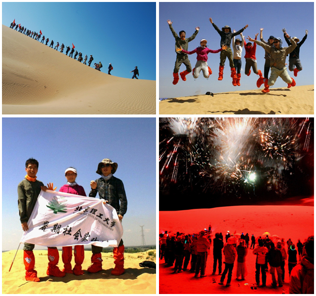 本次活动有100多名来自全国各地高校和美国、澳大利亚等高校的学生老师参加。在为期一周的活动中,同学们短暂地远离喧嚣的都市,走进浩瀚无际、广阔无声但充满温暖与感动的库布其沙漠,大漠归来虚实难辨,让人的意识游离于现实世界与梦幻般的库布其三日徒步经历当中,这对每一个成员们来说都是体力、耐力和意志力的考验。在经验丰富的领队的带领下,队员们不断挑战自我,挑战恶劣自然环境,最终顺利安全的完成整段穿越行程。