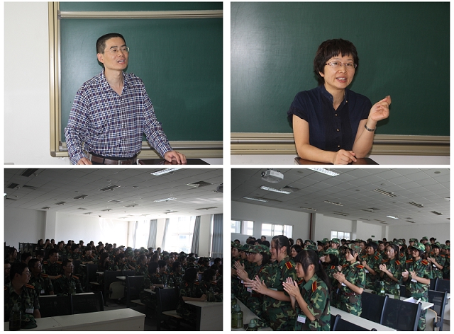 在理科教学楼101教室,三位学院领导分别向同学们表达了学院对同学们的亲切慰问与良好祝愿,预祝大家中秋快乐。老师们勉励新生要认真上好大学第一课,坚持努力训练,以最饱满的姿态完成学校的军训任务。院领导们同时勉励了军训带队的指导员,感谢他们多日来辛勤的付出,并表示非常期待外国语学院同学们精彩的表现。会后,学院领导们还与同学们进行了亲切的交谈,此次慰问活动让大一的同学们深深感受到了外国语学院家的温暖,同学们均表示看到自己的老师们到来非常兴奋与激动,十分感谢学院领导的关怀,并表示将努力训练,争取出色地完成此次军训任务,以实际行动为院争光。