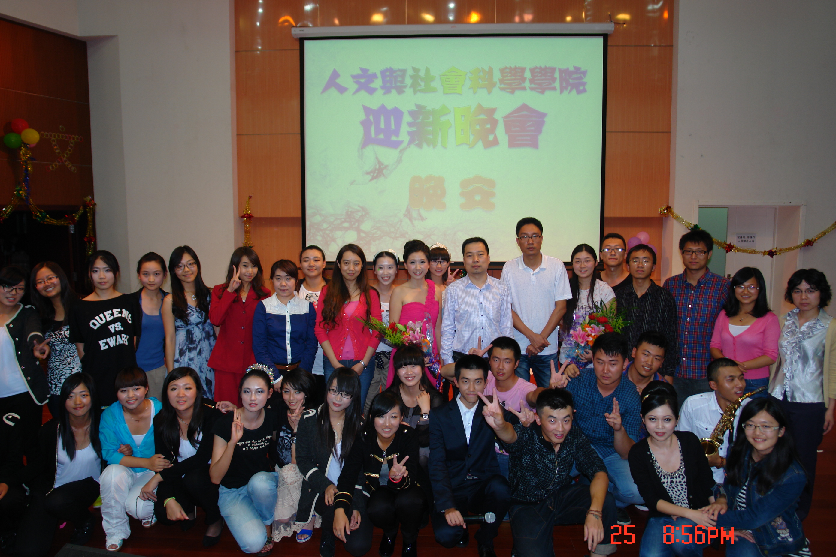 晚会结束后到场老师与演职人员合影留念。通过这次晚会,12级的新生们深深感受到了学院老师、学长学姐们的热情,增进了同学们彼此间的友谊,人文学院将成为学生们大学生活的全新起点。“长风破浪会有时,直挂云帆济沧海”,祝愿2012级新生们能乘长风,破万里浪,在大学四年里谱写下无悔的青春篇章。