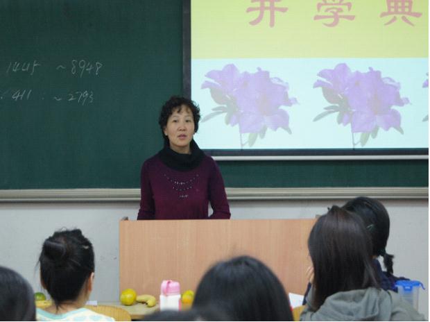 郜岭老师主持开学典礼。教务处副处长曹峰梅代表教务处对同学们开始教育学这一新领域的学习表示欢迎和祝贺,并鼓励同学们克服困难,努力完成学业,最终顺利获得教育学双学位证书。