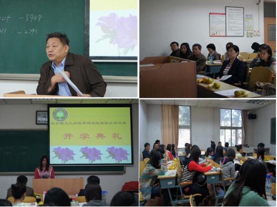2012年10月13日早9:00,在中关村校区3号楼311教室,教育研究院和教务处联合举行了我校首届教育学双学士学位班中关村校区的开学典礼。二十余名新同学参加了此次典礼。教务处曹峰梅副处长、教育研究院庞海芍书记、教育研究院学科责任教授马永霞教授、双学位项目负责人郜岭老师、任课教师张建卫老师、靳贵珍老师、包海芹老师、教学干事双学位班主任张国利老师出席典礼仪式。