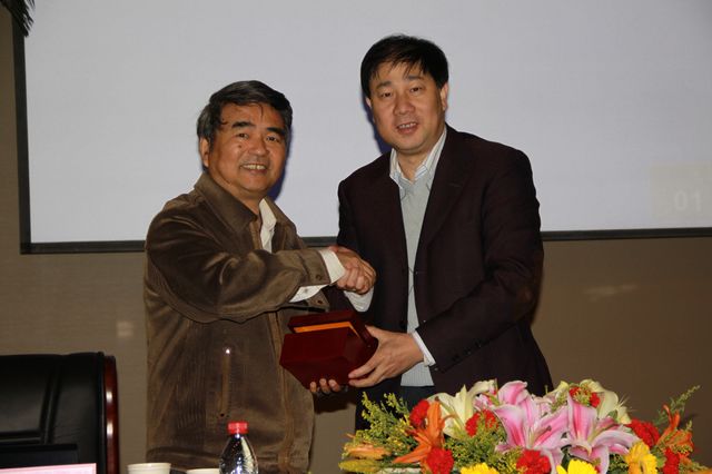 报告结束后,机械与车辆学院院长项昌乐教授向谭建荣院士赠送了纪念品,再次向谭院士关心和支持青年学生的成长成才,表示衷心的感谢。