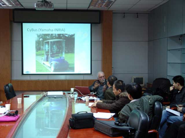 2012年11月21日14:00——16:00,交通运输工程学术讲座系列之一在我校车辆重点实验室一层会议室举行。本期讲座的主讲人是我校交通运输工程系系主任高利教授和来自法国的Michel教授,报告的主题是:“Automated Public Transport: ABRT,PRT and Cyber cars”。出席讲座的有机械与车辆学院交通运输工程系赵亚男教授、吴绍斌教授、熊辉教授、陈雪梅老师、姚丽亚老师,车辆专业博士生,交通专业博士生、硕士生及交通运输公路院工作人员等。