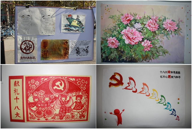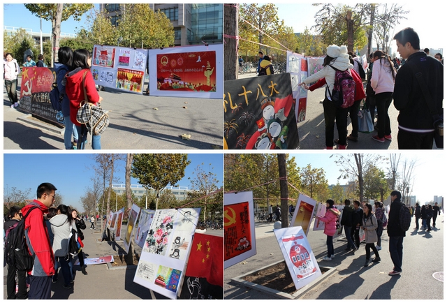 11月20日至22日,以“共画时势,献礼十八大”为主题的绘画作品在良乡校区南北主干道展出。活动共收集各类作品97张,板报10幅。其中有技艺精湛、栩栩如生的水墨画,也有简单朴实,寓意深厚的素描作品;有气势磅礴,图文结合的板报画,也有色彩丰富,别具一格的油画,设计学子纷纷用自己擅长的方式描绘出了精美的绘画作品,表达了同学们对祖国未来的美好祝愿和对幸福生活的期待。作品展吸引了众多同学驻足观看、拍照,受到了学校师生的欢迎和好评。