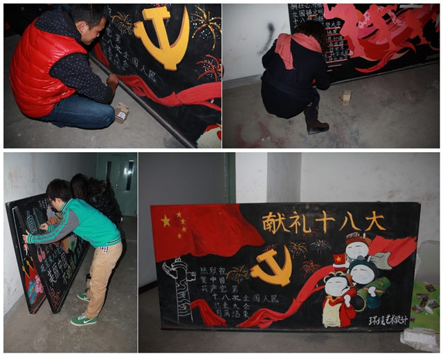 2012年11月,党的第十八次全国代表大会在北京成功召开。为引导团员青年学习十八大精神,坚定马克思主义信仰,树立跟党走中国特色社会主义道路的理想信念,设计与艺术学院结合学生专业特点在两校区开展“共画时势,献礼十八大”主题团日活动。活动以本科生团支部为单位开展,各团支部通过收看、集体学习等形式积极学习十八大报告及会议精神,结合自身学习感受,用手绘、板报、素描、油画等形式将时势和专业结合起来,以生动、形象的形式展示学习成果。