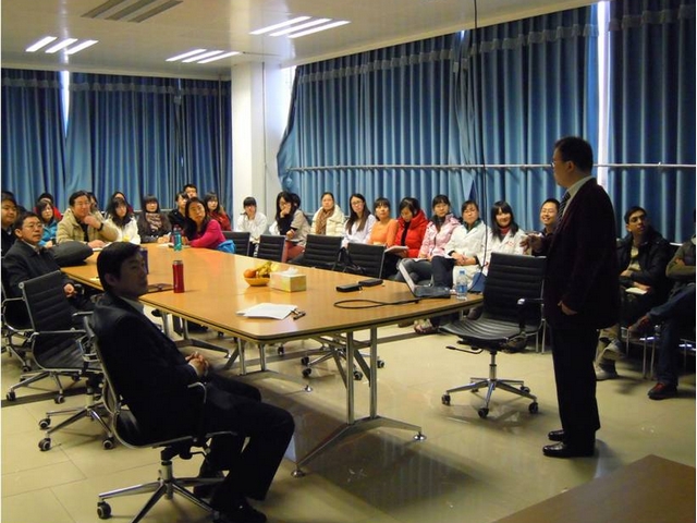 2012年11月26日,应生命学院李春教授邀请,南京工业大学科技处处长、国家杰出青年基金获得者黄和教授等一行三人来生命学院参观。黄河教授为北理工师生带来了题为“生物基化学品的生物制造”的报告,李春教授主持了这次学术报告会。北理工生命学院党委书记李汉军、屈锋教授、赵东旭副教授、郭淑元副教授、李艳菊副教授、周晓宏博士和清华大学吴玉龙教授、天津大学巩金龙教授及北理工部分研究生参加了报告会。