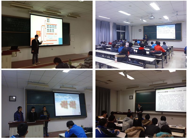 07111203、07111204、07111202、07111101团支部以集中学习的形式学习十八大精神。在学习过程中,各支部以“十八大”大会议程为主线,分别介绍了人民代表大会制度,党的十七届中央委员会报告,党的十八大中央委员会等内容。并且对十八大报告中关于青年学生、文化建设等部分进行了重点学习。学习过程中涌现出了一批理论知识丰富、口才好能力强的学生,很好的带动了大家的学习热情。