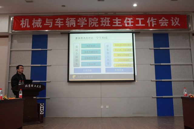 机械与车辆学院历来十分重视学生的学风和班风建设,学院个性化奖学金体系中就包含了奖励班集体、宿舍集体的奖学金。学院一贯坚持选聘具有博士学位且在教学科研一线的优秀青年教师担任本专业本科班级的班主任,充分发挥这些教师专业知识上的优势对学生持续进行专业教育和引导,增强学生对专业的认同感和归属感。学院此次学风建设研讨会暨班主任工作会是学院学习落实学校人才培养工作会议精神的重要举措,是建设和完善学院广义的人才培养教师队伍体系的有效手段。此次会议为2013年学院的学风建设、班风建设及班主任工作等均提出了明确的努力方向和行之有效的方式方法,同时也为学院人才培养工作的开展提供了重要的数据依据和支撑。