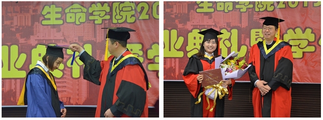 最后,隆重的学位授予仪式开始,生命学院书记李汉军为博士、硕士研究生毕业生授予学位。又一届生命学子,迈出校门,希望大家带着“健康 快乐 团结 发展”的精神,在自己的生命中,事业有成,幸福快乐!