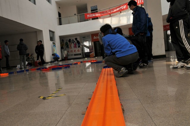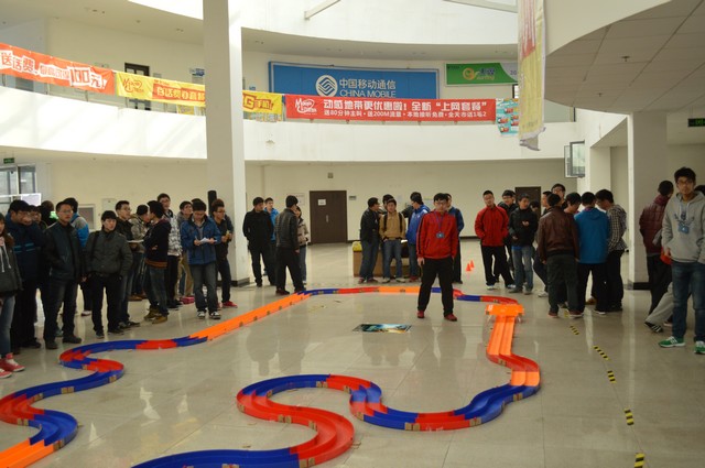 3月24日早上10点,德赢AC米兰官网方程式赛车俱乐部成员在良乡校区学生服务中心进行紧张的赛道拼装。11点,陆续有参赛选手前来进行试跑,从各位选手专业的装备,飞驰的赛车中,我们知道,下午的比赛将异常激烈。