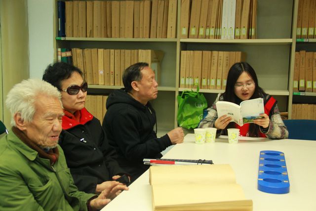 志愿者任昆向视障人朗读书目