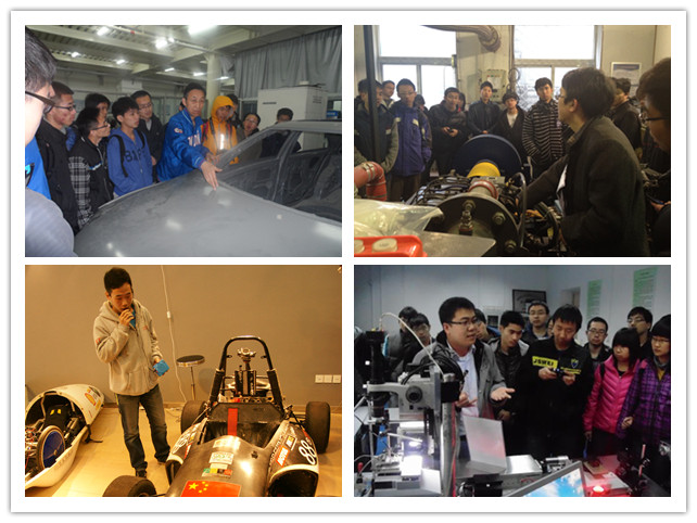 此行同学们还参观了机械与车辆学院大学生创新中心,学长们详细地介绍了有关方程式赛车、节能车、智能车等竞赛的内容,并展示部分电脑制作的三维模型、动态视频等,激发了同学们对于赛车研究与设计的兴趣,同时同学们也从学长身上学到了学以精工的精神。