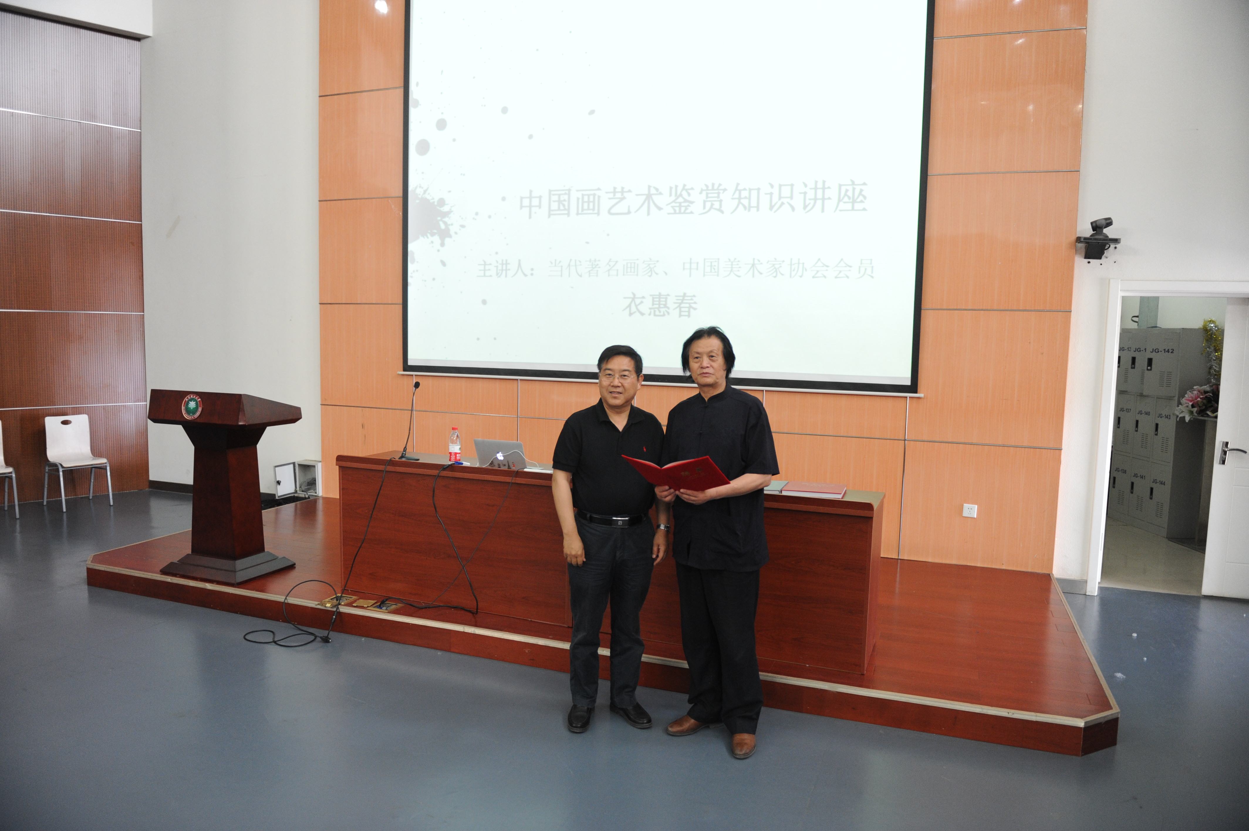 2013年5月14日下午,当代著名画家、中国徐悲鸿画院艺术委员会副主任衣惠春先生应北理工人文与社会科学学院邀请,在良乡校区综合教学楼报告厅为师生带来《中国画艺术鉴赏》书画艺术讲座。著名画家衣阳女士,人文学院党委书记张红峻教授,党委副书记、副院长徐贵宝老师与良乡校区两百多名师生共同聆听了此次讲座。讲座由人文学院团委书记孙硕老师主持。