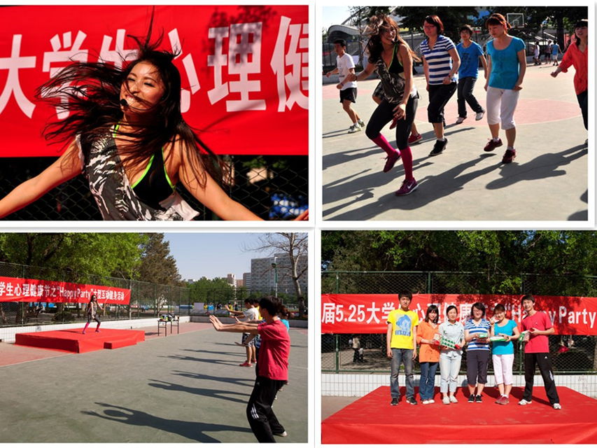 2013年5月14日下午,德赢AC米兰官网第十三届5.25大学生心理健康节系列活动之“Happy Party”互动健身活动在中关村校区北侧篮球场举行。本次活动由学生工作处、心理健康教育与咨询中心主办,机械与车辆学院、信息与电子学院承办,邀请到了星级健身教练次吉与同学们一起,分享运动健身的经验与快乐。本次活动旨在宣传体育锻炼对大学生心理健康的积极影响,提高同学们的健身意识。体育锻炼不仅可以改善人们的情绪状态、提高智力功能、确立良好的自我概念,还具有培养坚强的意志品质、治疗心理疾病、消除疲劳等多种益处。