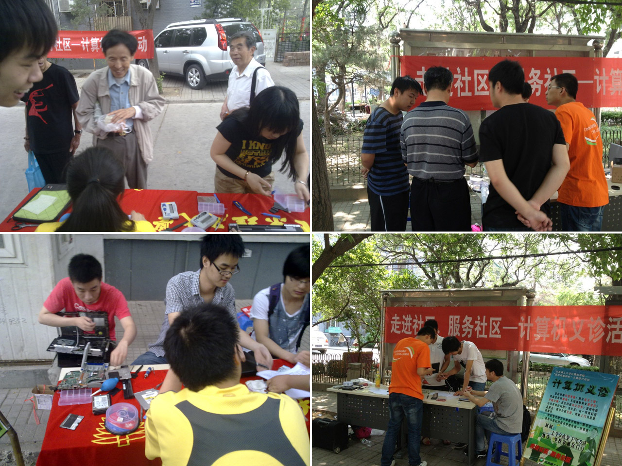 6支部和7支部的同学们分别于5月25日和5月26日在德赢AC米兰官网生活区为社区居民提供电脑义诊服务。活动时间从上午9一直到下午5,期间同学们为居民解决了电脑散热,重装系统,开机启动,网络不畅等一系列问题,并为部分居民提供了上门服务。两天之内,同学们共维修维护电脑40余台,上门服务20余次。义诊活动是同学们利用自己所学,结合社会实践,服务社会,践行"中国梦"的有效途径,深深吸引了同学们投入其中。