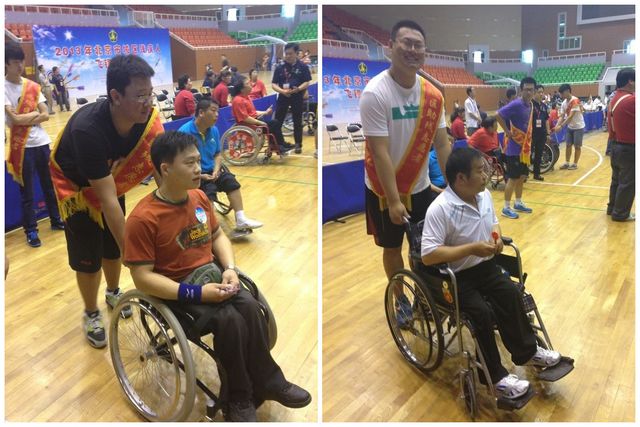 由于此次比赛的参赛者均为肢体障碍和语言障碍的残疾人运动员,同学们在整个比赛进行过程中进行了对残疾人运动员的全程服务,其中包括推送运动员上场比赛、下场休息和帮助残疾人运动员使用卫生间等,对于听力障碍的运动员,志愿者同学耐心的帮忙翻译和引导,获得参赛运动员们的一致好评。