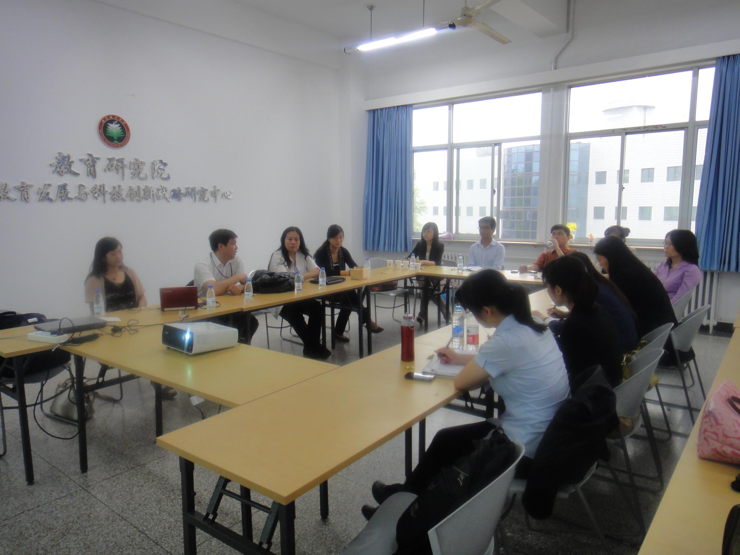 参观结束后,调研组返回北理工教育研究院405会议室进行了研讨交流会议,教育研究院何海燕教授主持了会议。会议播放了保利科技集团的宣传片,保利科技集团乔总围绕集团十二五发展规划与大家做了交流。他讲述了保利集团的发展史,通过讲述保利不平凡的发展历程,强调攻坚克难、艰苦奋斗的保利精神让保利科技拥有今天的成就。特别介绍保利集团依托科技发展产业、军贸日益活跃、专利布局在集团发展中的重要地位,产学研合作的新成就等,然后乔总针对同学们关心感兴趣的问题,从保利科技集团招聘应届毕业生所看重的能力和素质展开,与同学们交流了应当培养什么样的职业素养和如何在工作岗位中得到好的发展等问题。