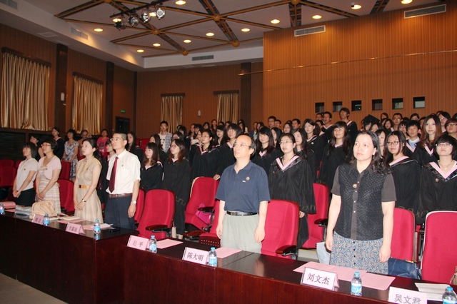 毕业生代表2009级德语专业贾思聪同学和2011级翻译硕士研究生闫璐同学分别代表本科生和研究生发言。她们首先代表所有毕业生感谢辛勤培养和教育过他们的外国语学院全体老师,向所有老师表达了深切的感激之情。她们回忆了学习生活中的点点滴滴,在几年的学习生活中,她们不断成长,不断收获。大学的生活教会了她们珍惜与感恩。最后,她们表示将永远以母校“德以明理,学以精工”的校训来勉励自己,不断前行。