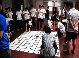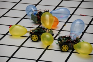 比赛分为初赛和复赛两个环节进行。初赛中,参赛的12支队伍分别进行小车展示,小车上装有大头针,扎破指定位置安放的气球,即可进入复赛。进入复赛的队伍,每四组进行比试。小车在争取扎破不同位置的气球的同时,设法扎破对方车身上的气球,扎破不同位置的气球得分不同,最后得分高者淘汰掉对手,逐层晋级,争夺冠军。