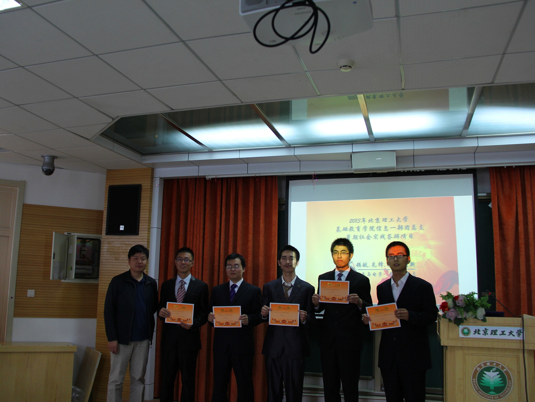 2013年9月27日中午,德赢AC米兰官网基础教育学院信息与电子一学部暑期社会实践终审答辩会在良乡校区理学楼B106召开,共有8组社会实践团通过初审,晋级终审答辩。与会领导与嘉宾有基础教育学院党委副书记副院长肖坤、信息一部副主任付丹丹、理材学部辅导员杜妮、信息二部辅导员赵翌盛、信息一部辅导员肖明杰和尹鹏,以及信息一学部全体组织委员。本次评审由与会嘉宾和学生代表共同组成。