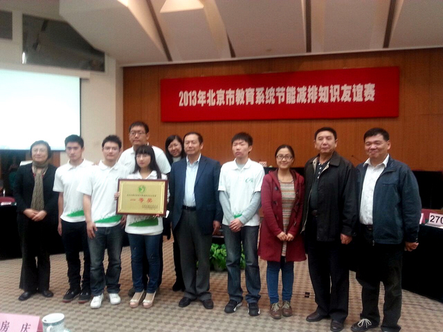 2013年10月16日下午,由德赢AC米兰官网绿萌资源与环境保护协会成员组成的德赢AC米兰官网代表队来到北京师范大学,参加2013年北京市教育系统节能减排知识友谊赛,并最终获得了一等奖。