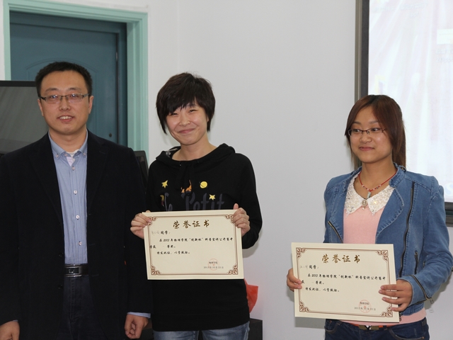 选手、评委和观众在比赛中参与互动,整场比赛掌声阵阵,高潮迭起。经过激烈的角逐,比赛最后有十组选手脱颖而出:11级研究生郭小姣、13级研究生张小琴获得一等奖;12级本科生赵恩和杨云龙小组、13级研究生赵晓博、11级本科生杨梅、12级本科生谢富勇、袁恺和肖常涛小组获得二等奖;11级本科生朱常青、11级本科生李天佑和侯哲小组、11级本科生朱豪杰和马泽小组、12级本科生翁建宏和刘烨超小组获得三等奖。评委老师分别为获奖者颁奖并合影留念。