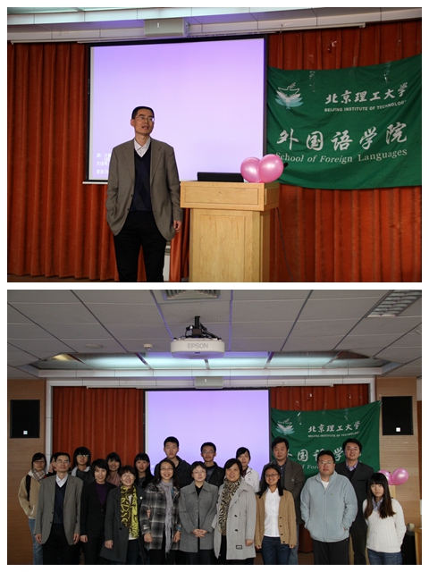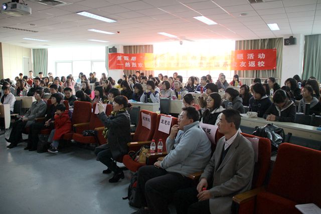 2013年10月27号上午,北理工外国语学院94级英语系毕业生报告交流会,暨外国语学院第六期“学长论道,指点迷津”主题活动在良乡校区理学楼B206报告厅如期举行。此次活动共邀请了7位我院第一届毕业生——英语系94级优秀校友回到母校良乡。外国语学院常务副院长李京廉教授出席活动,学院分团委书记周芳集,辅导员韩欣欣携外国语学院英语系130余名学生参会。供稿:王鑫 摄影:韩欣欣 编辑:闫璐