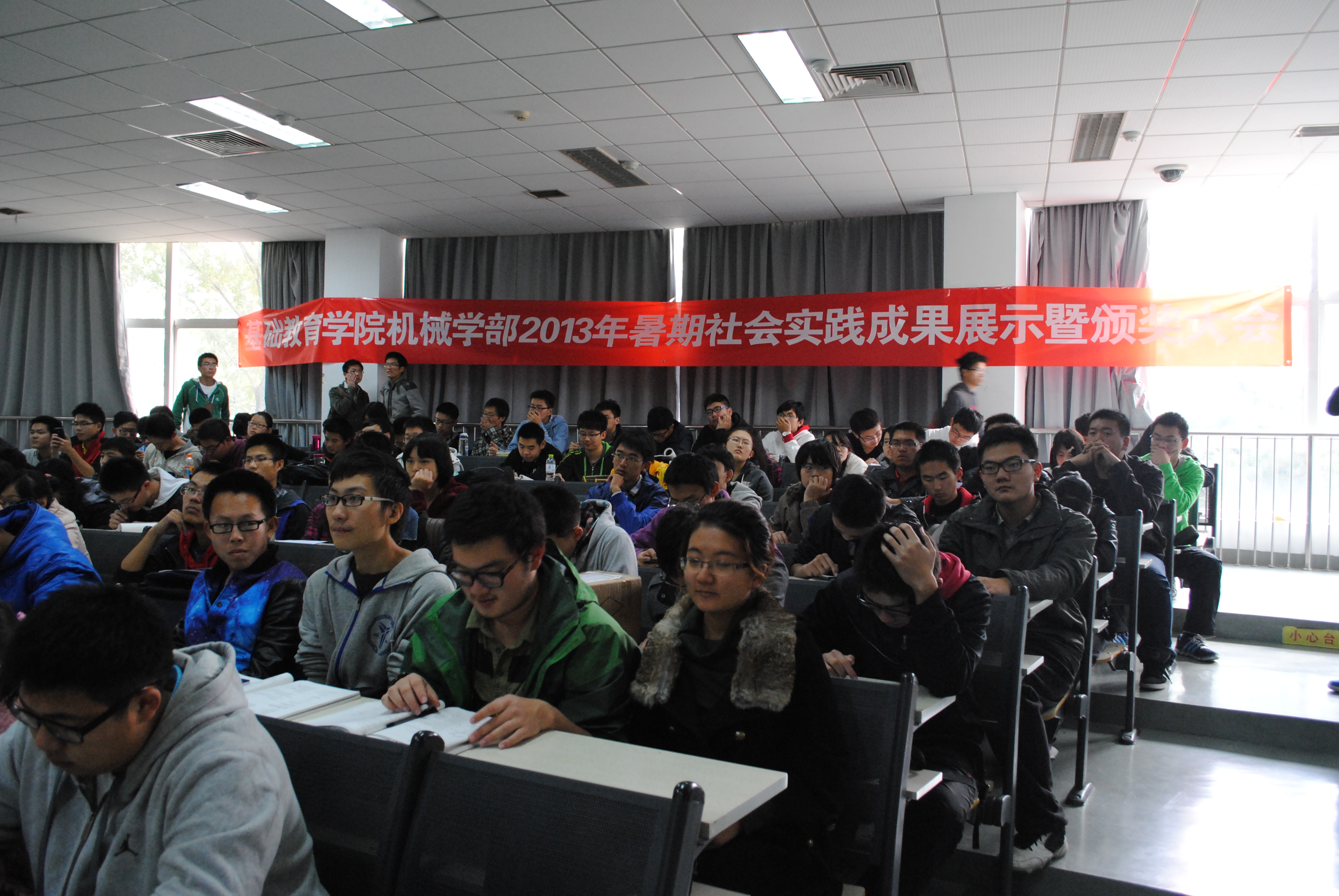 10月31日,基础教育学院机械学部在良乡校区举行2013年暑期社会实践成果展示暨颁奖会。基础教育学院党委副书记、副院长肖坤,校团委副书记兼基础教育学院团委书记陆宝萍,基础教育学院团委副书记宋凯,机械学部副主任张磊及机械学部全体辅导员应邀出席颁奖会。2013年机械学部暑期社会实践团获奖团队代表、各团支部代表参加颁奖会。