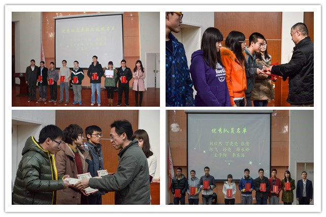 会议期间,与会嘉宾与领导分别为获得本年度优秀励志征文奖、自强社“十佳社员”、学生服务大队“优秀队员”的同学以及获得学生服务大队“优秀中队”的各学院代表颁奖,并合影留念。
